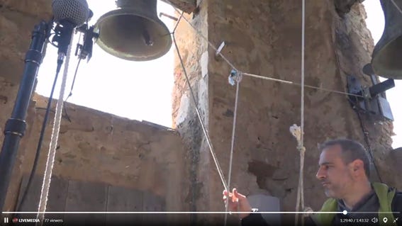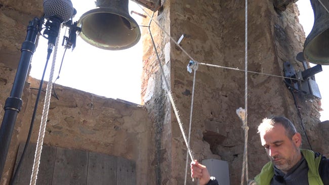 Recuperar els tocs de campanes a Sant Romà de Joanetes. Xavier Pallàs Mariani [21/4/2021]. Inclou el vídeo editat de la transmissió des del campanar de Sant Romà de Joanetes, una conversa amb el seu darrer campaner Llorenç Llongarriu, i gravacions de l'entorn acústic en 360º.