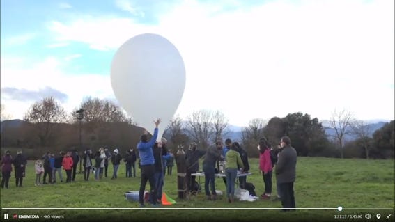 En un altre acció per Lluèrnia, Estratosfèrics, l'enlairament d'un globus sonda des de Batet de la Serra a les set de la matinada amb la sortida del sol, la transmissió permet que l'esdeveniment sigui accessible per un públic online i que durant tot el dia "continuï existint" amb més de 800 visites.